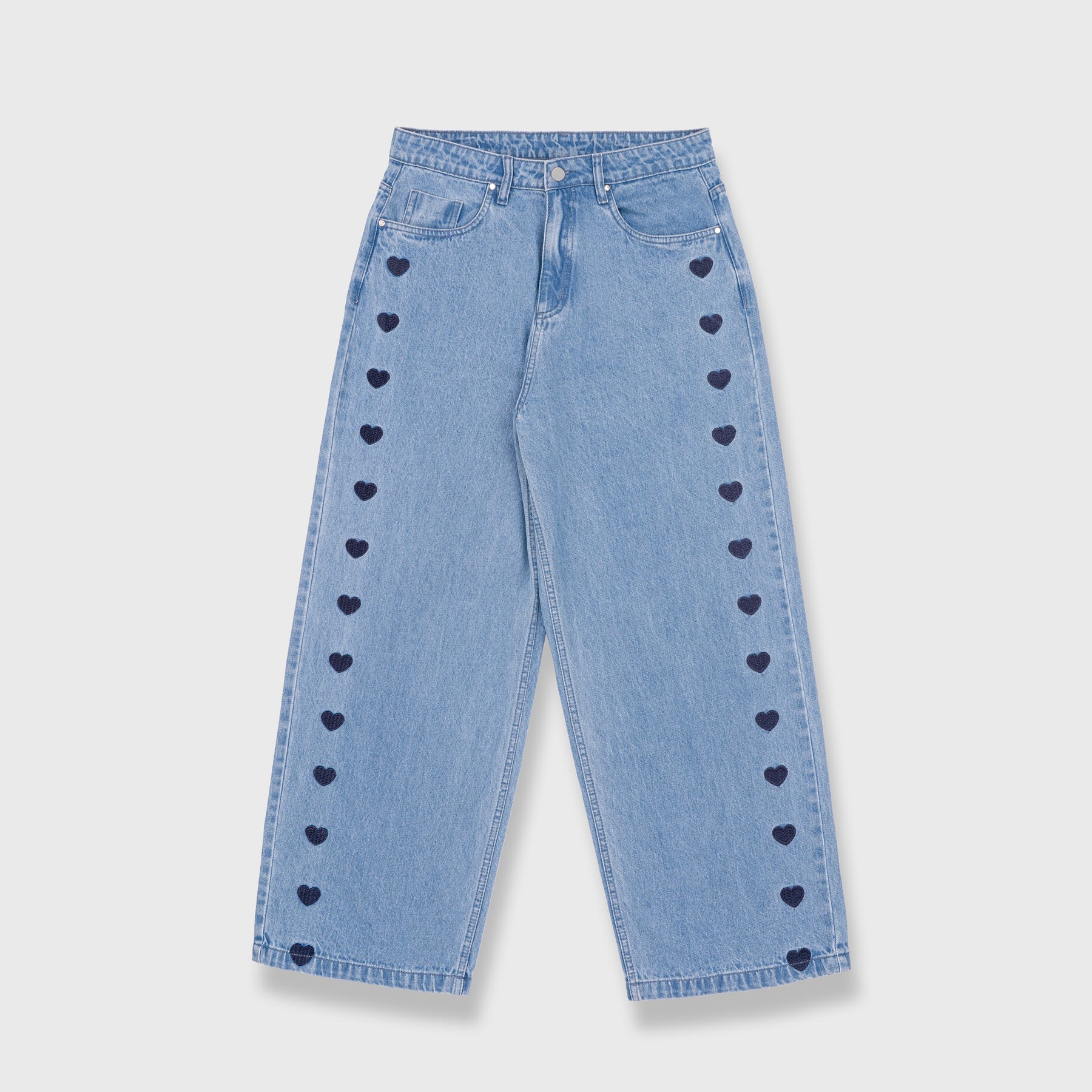 These upcycled baggy denim get a fresh twist heart embroidery that adds a punch of playfulness and personality. Perfectly relaxed for all-day moves, they’re the go-to for anyone who’s serious about style and sustainability.