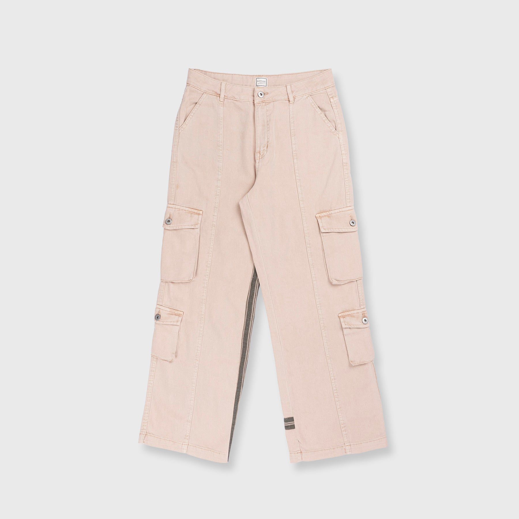 Stay right on trend with these beige wide-leg cargo pants. Designed for both style and comfort, these high-waisted trousers feature spacious utility-style pockets. Upcycled yet effortlessly cool.