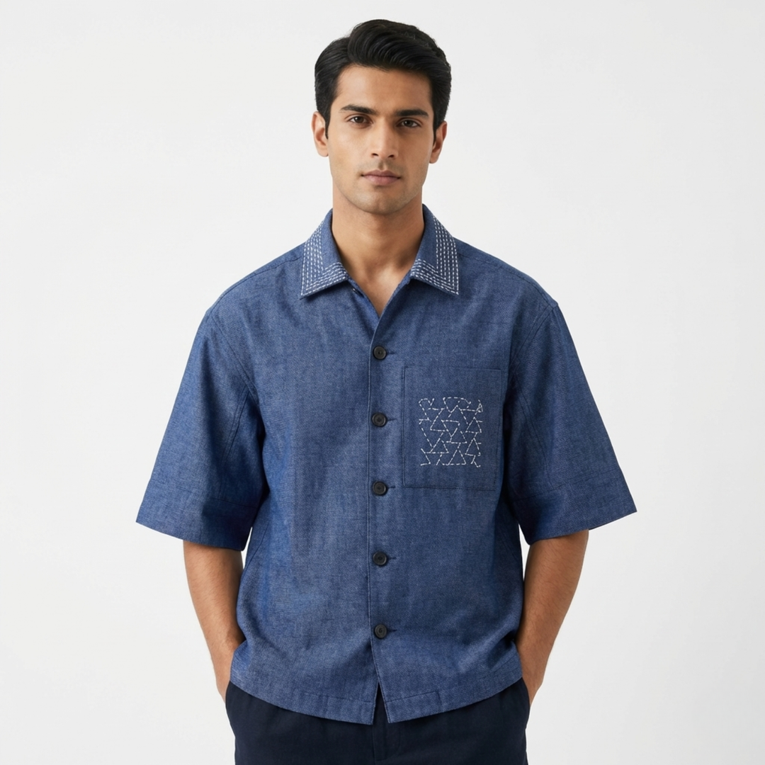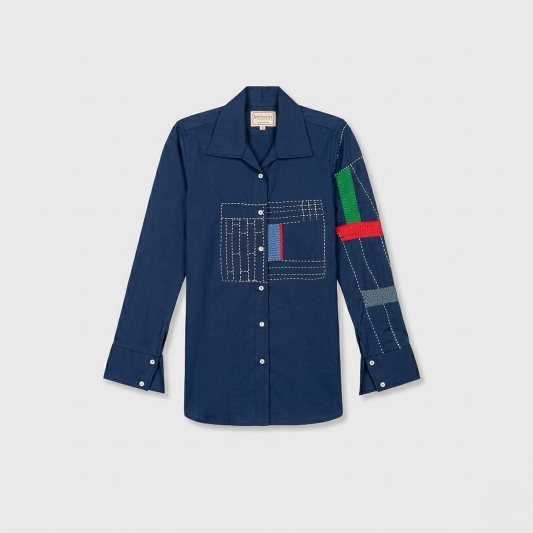 Blue Embroidery Mosaic Shirt
