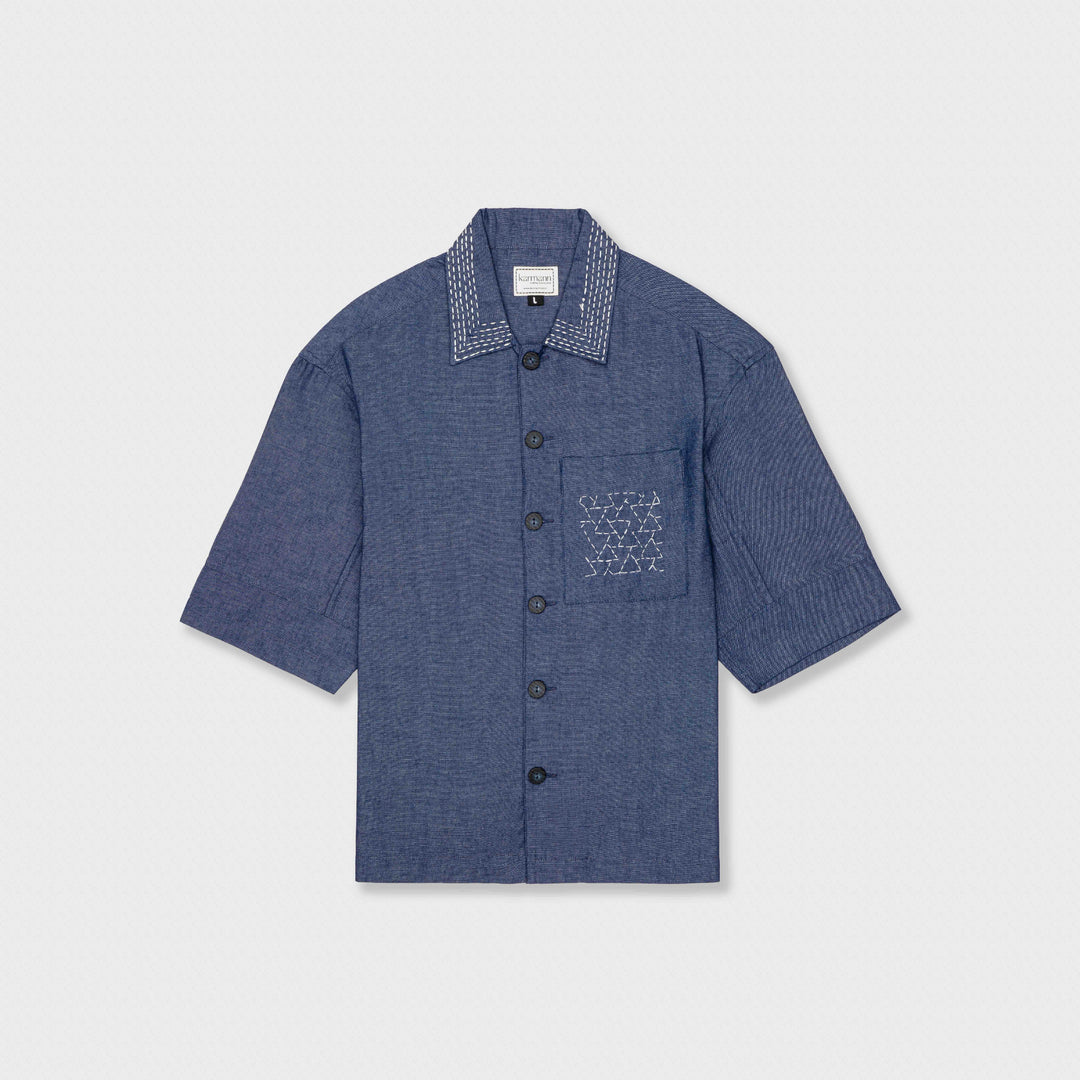Kantha patchwork mens shirt style Blue