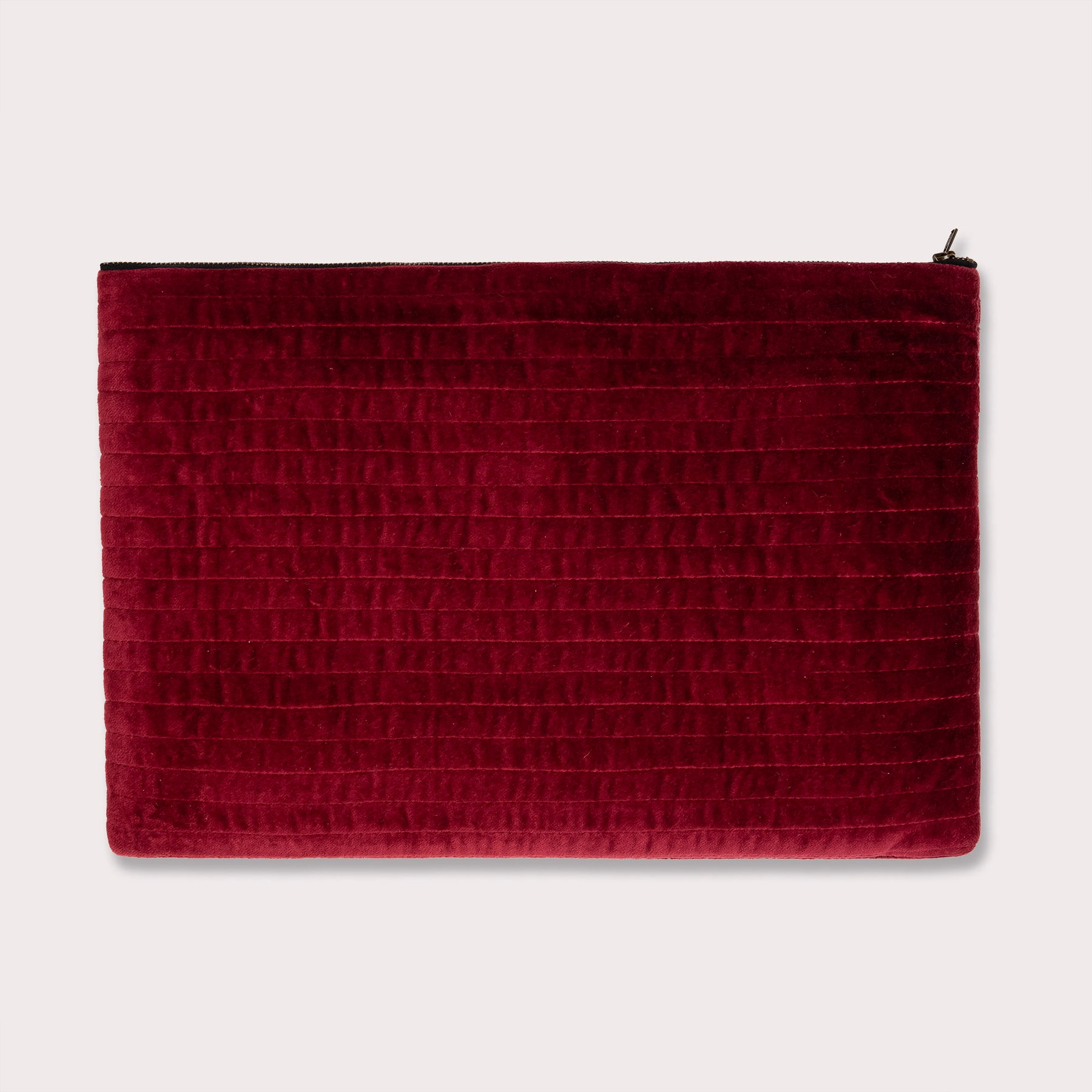 Step out in style with the Velvet Zipper Laptop Sleeve. A sturdy metal zipper adds a refined touch and secures your essentials with ease. The slim silhouette fits snugly into your tote or backpack, while the minimalist design makes it perfect for both work and travel.
